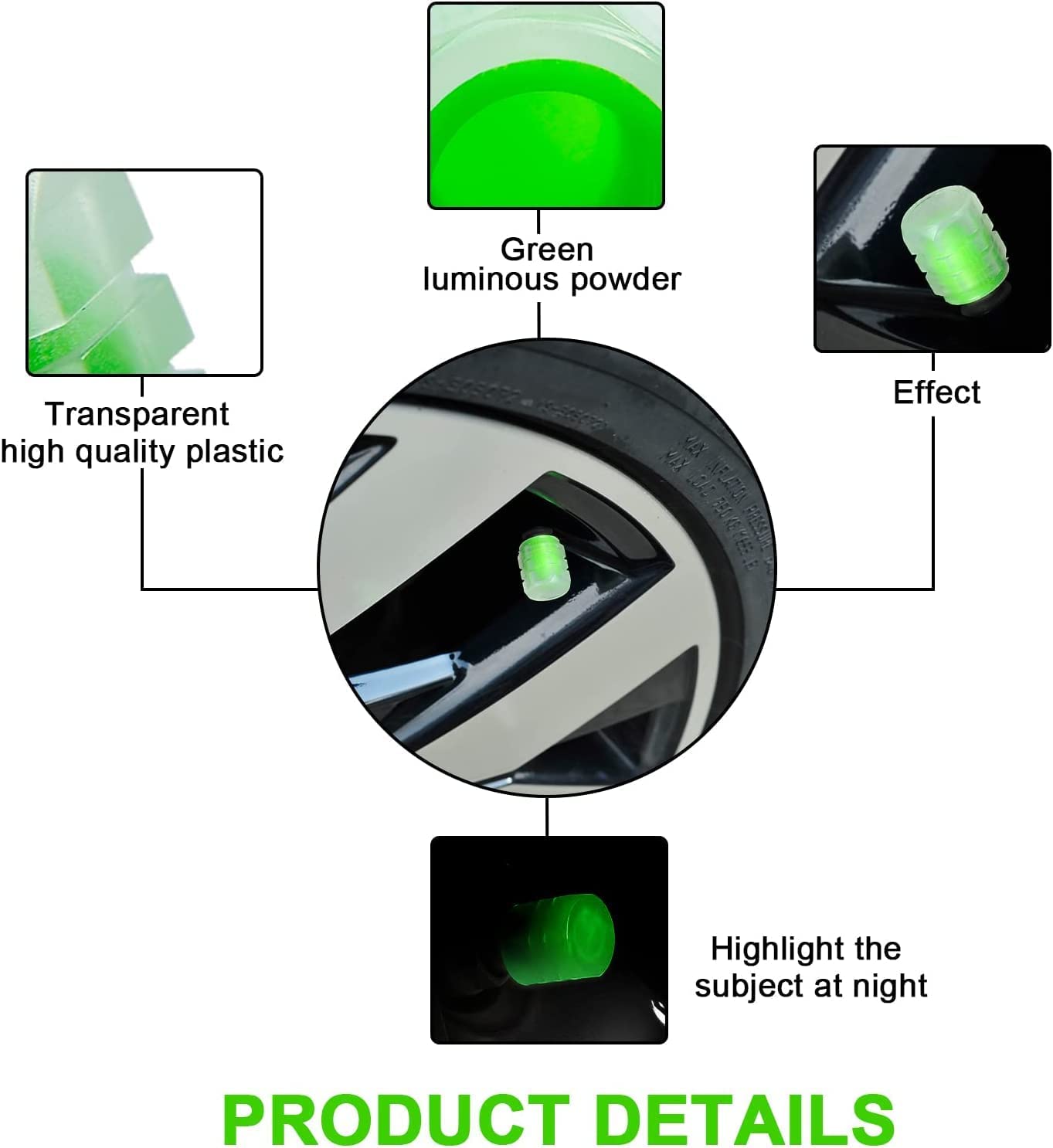 Not just that fluorescent valve caps protect tyres valves from dust and prevent leaking while adding a shiny and luxurious look to your car.