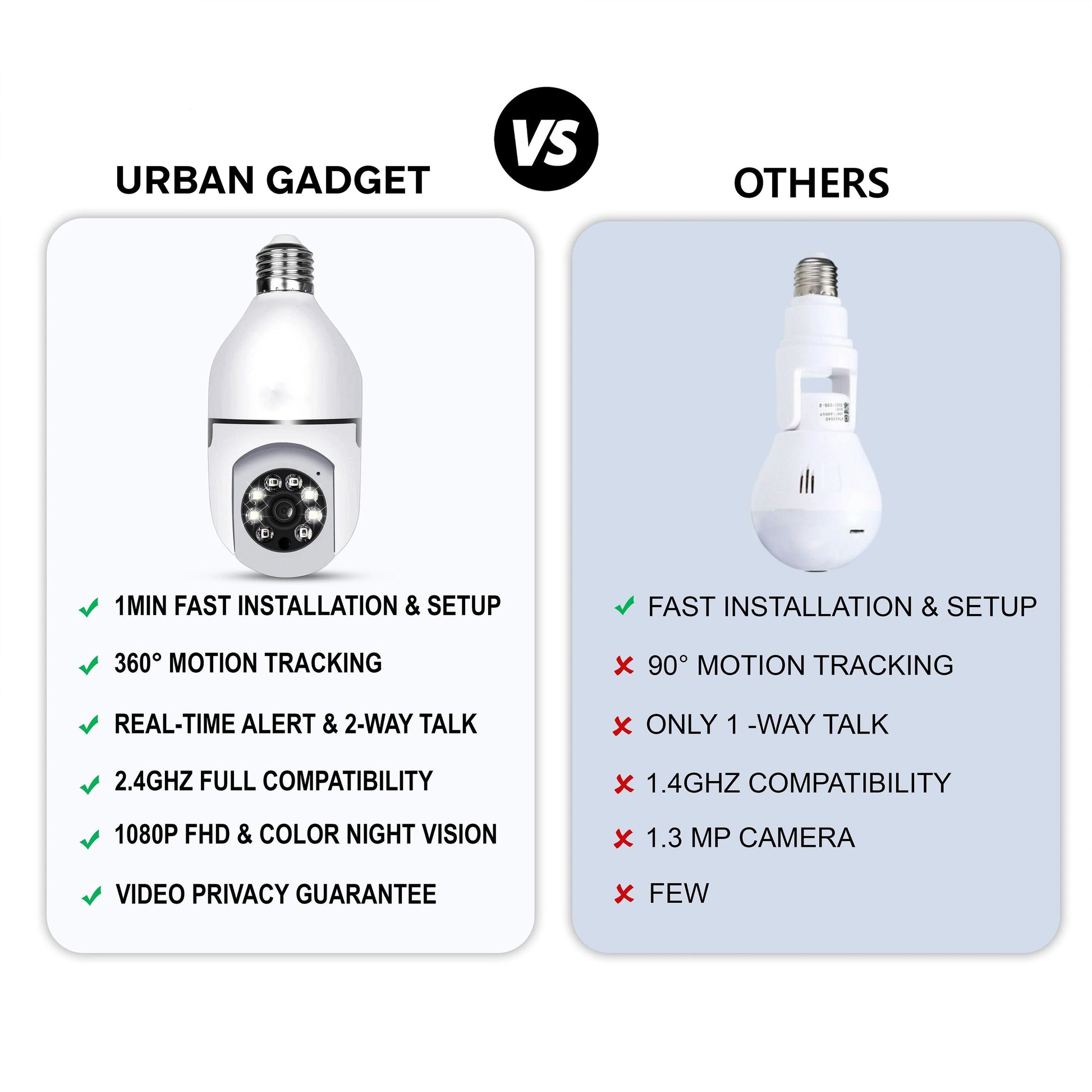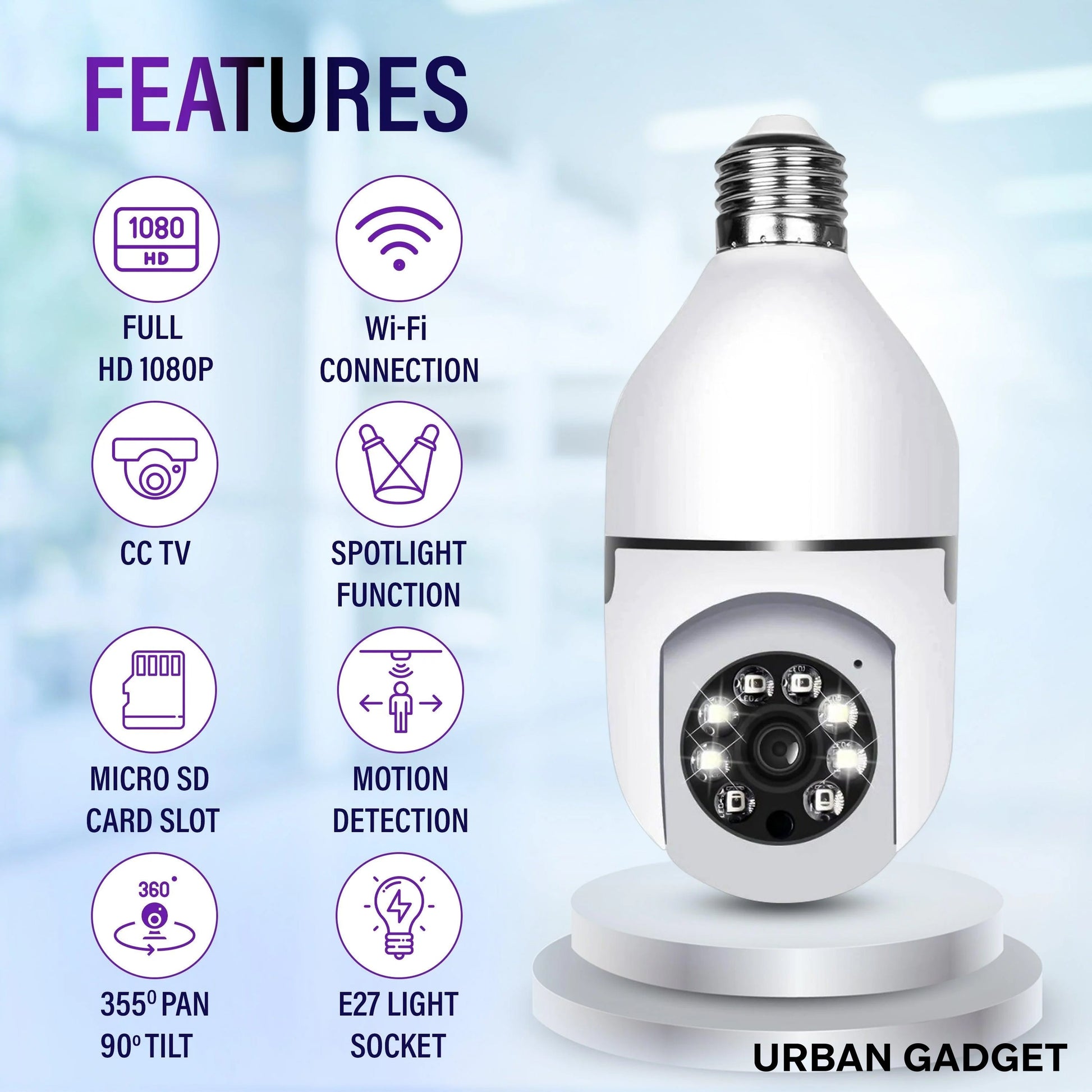 Introducing the Urban™ Vision360, a cutting-edge bulb light wireless IP camera designed to provide unparalleled security and peace of mind. With its sleek design and advanced features, the Vision360 is more than just a camera; it's an integral part of your home security system, blending seamlessly into your home decor while keeping a vigilant eye on your premises.